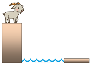Una cabra se encuentra en la orilla de un barranco por el que todavía corre el agua, en un montículo a 2 metros sobre el nivel del agua y desea llegar a la otra orilla sin mojarse, según el esquema adjunto. La otra orilla se encuentra a 3,5 metros de distancia. Inicia el salto con una velocidad de 6 metros por segundo y lo hace con un ángulo de 30º con la horizontal.