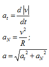 NOTAR COMO LA FÓRMULA DE LA ACELERACIÓN TANGENCIAL ES EVIDENTE, CONTANDO CON LA DEFINICIÓN DE «ACELERACIÓN TANGENCIAL» Y CON EL SENTIDO DE LA OPERACIÓN «DERIVADA» COMO VARIACIÓN. PARA LA EXPRESIÓN DE LA ACELERACIÓN NORMAL, LA COSA ES MÁS COMPLICADA, REQUERIENDO UN ARTÍCULO ESPECÍFICO PARA SU OBTENCIÓN.