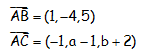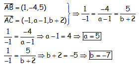 Hallar a y b para que A(1,1,-1), B(2,-3,4) y C(0, a, b+1) estén alineados.