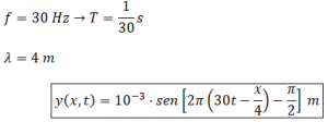 Para calcular la fase inicial, teniendo en cuenta que en t=0, x=0 → y(0,0)=-10-3 m, entonces y teniendo en cuenta que A=10-3 m: