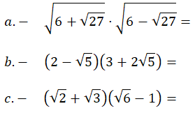 Realizar las siguientes operaciones con radicales, sin calculadora y simplificando al máximo las expresiones obtenidas: