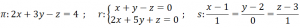 En el espacio tridimensional consideramos el plano y las rectas siguientes: