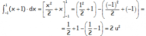 Esto se puede comprobar fácilmente en el ejemplo siguiente, donde tenemos representada la recta y=x+1, que es la función que hemos integrado entre los límites de integración x=-1 y x=1.