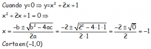 Con el eje horizontal (eje x) cuando la y = 0; esto nos obligará en el caso de las parábolas a resolver la ecuación de segundo grado.