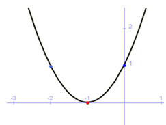 Teniendo en cuenta que sólo tenemos dos puntos (el vértice y un punto a la derecha de él) estaría bien obtener otro punto a la izquierda del vértice, por ejemplo en x=-1; haciendo la tabla de valores: