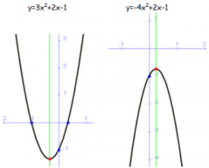 Si a es negativo (a < 0) la parábola está abierta hacia abajo y el vértice es negativo.